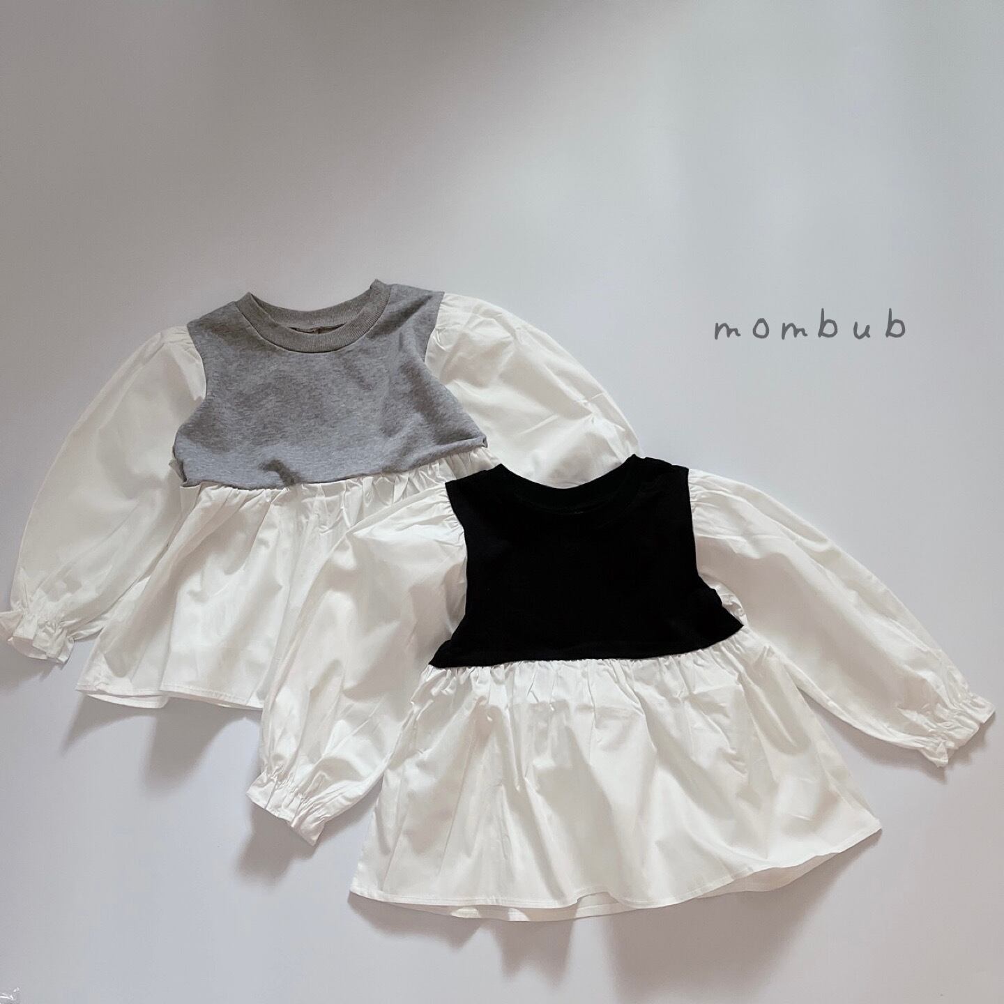 【送料無料*即納】女の子 ふんわり ドッキング キャンディースリーブ ブラウス チュニック トップス